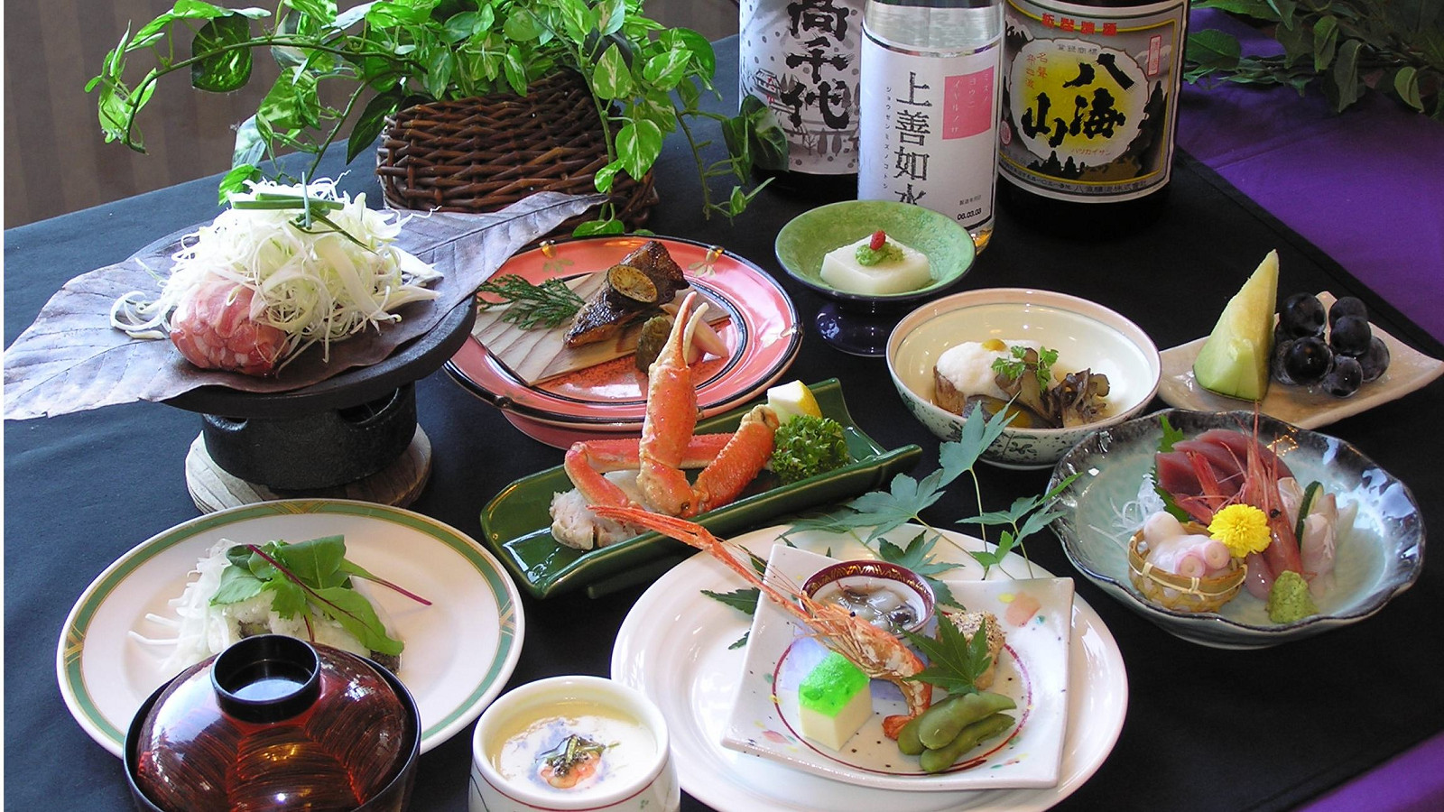 食事処も併設しており、季節の懐石料理や、ベニズワイガニの食べ放題、豚しゃぶしゃぶの食べ放題を堪能できます。